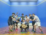 部活動レベルの7人が交代で、Mさんとオールコートラリーし、実年齢相当の点数を取るまでMさんはコートから出られないという手荒なお祝いイベント。